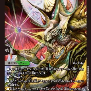 バトルゾーンにある相手のクリーチャーはすべて「ブロッカー」を得る。(自分のクリーチャーが攻撃する時、相手は「ブロッカー」を得たクリーチャーをタップして、その攻撃を阻止してもよい。その後、両クリーチャーはバトルする)W・ブレイカー(このクリーチャーはシールドを2枚ブレイクする)
