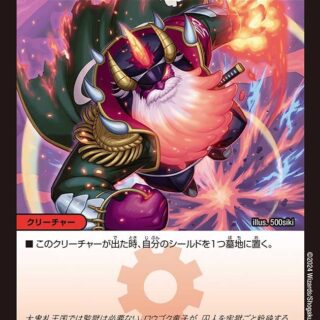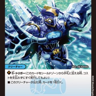 S・トリガー(この呪文をシールドゾーンから手札に加える時、コストを支払わずにすぐ唱えてもよい)バトルゾーンにある相手のタップされているクリーチャーを1体選ぶ。このターンの終わりまで、そのクリーチャーのパワーは-1000される。(パワー0以下のクリーチャーは破壊される)