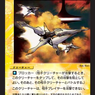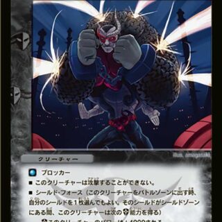 ウェーブストライカー(バトルゾーンに「ウェーブストライカー」を持つクリーチャーが他に2体以上あれば、このクリーチャーは次の能力を得る)このクリーチャーのパワーは+4000され、「闇ステルス」を得る。(相手のマナゾーンに闇のカードが1枚でもあれば、「闇ステルス」を持つクリーチャーはブロックされない)