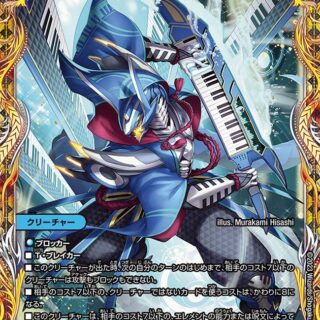 W・ブレイカー(このクリーチャーはシールドを2枚ブレイクする)相手のターン中、このクリーチャーがタップされていて、そのターンにまだ攻撃を受けていない場合、相手のクリーチャーは可能ならこのクリーチャーを攻撃する。