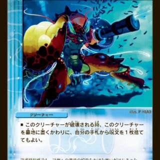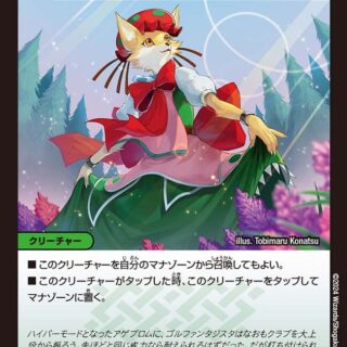 自分の山札からカードを1枚さがして表にし、自分のマナゾーンに置く。 そのあと、山札をシャッフルする。