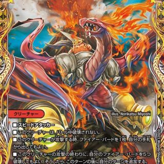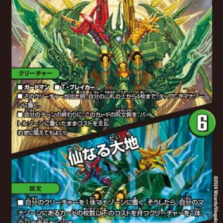 スピードアタッカーマスター・メラビート:このクリーチャーが召喚によってバトルゾーンに出た時、「J・O・E」能力を持つジョーカーズを1体、自分の手札からバトルゾーンに出す。このターンの終わりに、それを自分の山札の一番下に置く。下に置いたら、カードを1枚引く。