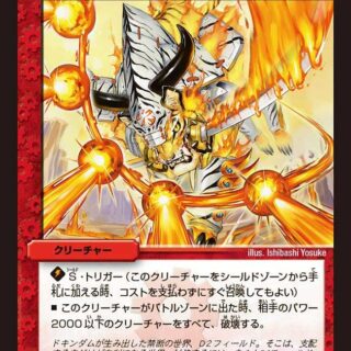 マナゾーンに置く時、このカードはタップして置く。スピードアタッカー(このクリーチャーは召喚酔いしない)スレイヤー(このクリーチャーがバトルする時、バトルの後、相手クリーチャーを破壊する)