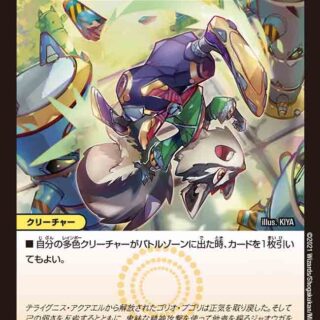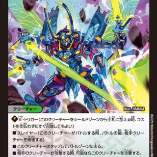 S・トリガー(このクリーチャーをシールドゾーンから手札に加える時、コストを支払わずにすぐ召喚してもよい)ブロッカー(このクリーチャーをタップして、相手クリーチャーの攻撃先をこのクリーチャーに変更してもよい)このクリーチャーがバトルゾーンに出た時、相手のクリーチャーをコストの合計が6以下になるよう好きな数選び、破壊する。