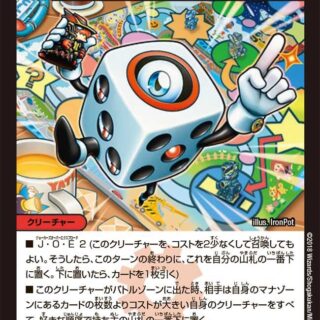 マナ武装 5:自分のマナゾーンに水のカードが5枚以上あれば、このクリーチャーは「S・トリガー」を得る。このクリーチャーをバトルゾーンに出した時、バトルゾーンにあるコスト5以下の進化ではないカードを1枚選び、持ち主の手札に戻す。W・ブレイカー(このクリーチャーはシールドを2枚ブレイクする)