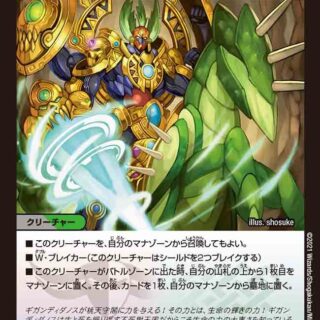 S・バック-光(光のカードを自分のシールドゾーンから手札に加える時、そのカードを捨ててもよい。そうした場合、コストを支払わずにこのクリーチャーを召喚する)ブロッカー(相手クリーチャーが攻撃する時、このクリーチャーをタップして、その攻撃を阻止してもよい。その後、その相手クリーチャーとバトルする)このクリーチャーは、相手プレイヤーを攻撃できない。