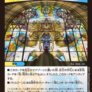 S・トリガー(このクリーチャーをシールドゾーンから手札に加える時、コストを支払わずにすぐ召喚してもよい)このクリーチャーをバトルゾーンに出した時、自分の手札を1枚、新しいシールドとして自分のシールドゾーンに裏向きにして加えてもよい。そうした場合、自分のシールドをひとつ選び、手札に戻す。ただし、その「S・トリガー」は使えない。