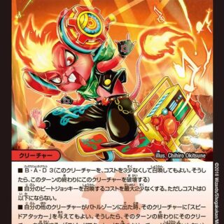 このクリーチャーをバトルゾーンに出した時、カード名をひとつ選んで言う。その後、自分の山札の上から5枚をすべてのプレイヤーに見せる。その中から、選んだ名前を持つカードをすべて手札に加え、残りを自分の墓地に置く。W・ブレイカー(このクリーチャーはシールドを2枚ブレイクする)