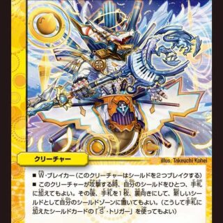 スペース・チャージ:闇(自分のマナゾーンに闇のカードが置かれた時、このクリーチャーの能力を使ってもよい)クリーチャーを1体、自分の墓地から手札に戻す。W・ブレイカー(このクリーチャーはシールドを2枚ブレイクする)