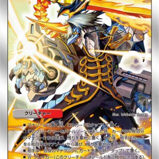 T・ブレイカー(このクリーチャーはシールドを3枚ブレイクする)覚醒 – 自分のターンのはじめに、自分の山札の上から1枚目をすべてのプレイヤーに見せる。そのカードがドラゴンであれば、このクリーチャーをコストの大きいほうに裏返す。(ゲーム開始時、サイキック・クリーチャーは山札には含めず、自分の超次元ゾーンに置き、バトルゾーン以外のゾーンに行った場合、そこに戻す)