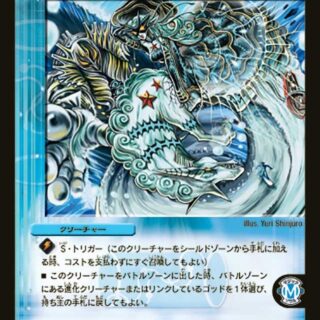 地獄返霊4(このクリーチャーが攻撃する時、またはその能力を使った時、自分の墓地からカードを4枚、好きな順序で山札の一番下に置いてもよい。そうした場合、このクリーチャーの能力を使う)相手のクリーチャーを1体破壊する。W・ブレイカー(このクリーチャーはシールドを2枚ブレイクする)