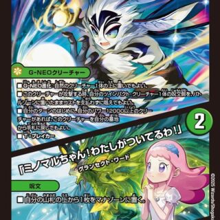 D・D・D [lfn07]NEO進化:光、火、または自然のクリーチャー1体の上に置いてもよい。Q・ブレイカー相手のクリーチャーが出るか攻撃することによってその能力がトリガーする時、これが進化クリーチャーなら、かわりにその能力はトリガーしない。