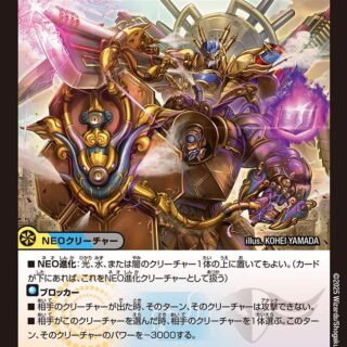 ブロッカーW・ブレイカーこのクリーチャーが出た時、相手は自身の手札を5枚選び、捨てる。このクリーチャーが攻撃する時、相手のクリーチャーを1体選ぶ。このターン、そのクリーチャーのパワーを-∞する。(パワー0以下のクリーチャーは破壊される)