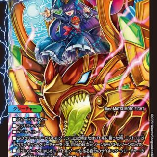 バトルゾーンにあるクリーチャー1体につき、このクリーチャーの召喚コストを1少なくする。ただし、コストは0以下にはならない。スピードアタッカーW・ブレイカーこのクリーチャーが出た時または攻撃する時、相手のクリーチャーを1体選んでもよい。その選んだクリーチャーとこのクリーチャーをバトルさせる。このクリーチャーがバトルに勝った時、カードを1枚引いてもよい。