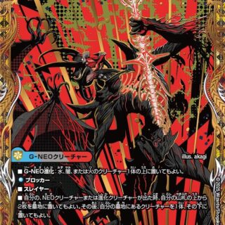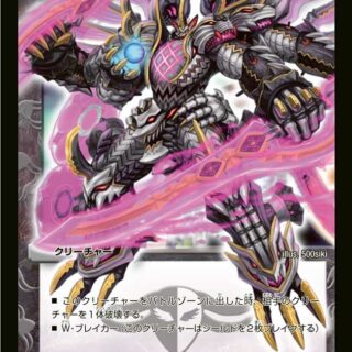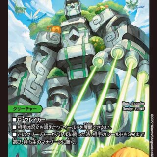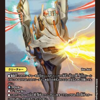 ブロッカーW・ブレイカーこのクリーチャーが出た時、次の中から2つ選ぶ。(同じものを2回選んでもよい。)▶相手のクリーチャーを1体選ぶ。このターン、そのクリーチャーのパワーを-4000する。▶自分の山札の上から4枚を墓地に置く。▶コスト4以下のクリーチャーを1体、自分の墓地から出す。このクリーチャーが離れる時、かわりに自分の他のクリーチャーを1体破壊してもよい。