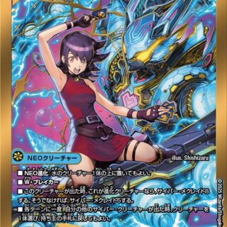 ウラ・ニンジャ・ストライク5(闇)スレイヤーW・ブレイカーこのクリーチャーが出た時、自分の手札から好きな枚数のシノビ・カードを表向きにしてもよい。こうして表向きにしたカードと自分のシノビそれぞれにつき、このターン、相手のクリーチャーすべてのパワーを-1000する。