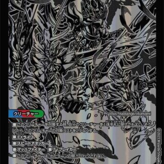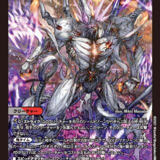 このクリーチャーが出た時、各プレイヤー1人につき、そのプレイヤーのクリーチャーを2体選び、そのうち1体をもう1体の下に置いてもよい。超魂X(これがクリーチャーの下にあれば、そのクリーチャーにも以下の能力を与える)このクリーチャーは、これよりコストが小さいカードの効果によって、相手に選ばれない。このクリーチャーは、これよりコストが小さいクリーチャーに攻撃されない。