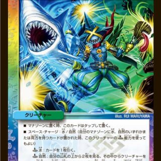 S・トリガー(このカードをシールドゾーンから手札に加える時、コストを支払わずにすぐ実行してもよい)NEO進化:光、水、または闇のクリーチャー1体の上に置いてもよい。ブロッカーこのクリーチャーが出た時、カードを1枚引く。これが進化クリーチャーなら、カードをもう1枚引き、自分の手札を1枚シールド化し、自分のシールドを1つ手札に加える。ただし、その「S・トリガー」は使えない。
