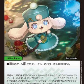 S・トリガー(このカードをシールドゾーンから手札に加える時、コストを支払わずにすぐ実行してもよい)NEO進化:水、闇、または火のクリーチャー1体の上に置いてもよい。ブロッカーこのクリーチャーが攻撃またはブロックした時、クリーチャーを1体、自分の墓地から手札に戻す。