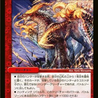 NEO進化:水、闇、または火のクリーチャー1体の上に置いてもよい。NEO進化クリーチャーとして召喚するなら、このクリーチャーの召喚コストを3少なくする。W・ブレイカーこのクリーチャーが攻撃する時、自分の山札の上から2枚を墓地に置く。こうして墓地に置いたアビス・カード1枚につき、相手は自身の手札を1枚選び、捨てる。このクリーチャーが破壊された時、コスト5以下のクリーチャーを1体、自分の墓地から出す。