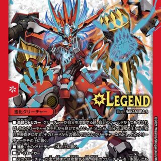 G・ゼロ:バトルゾーンに自分の、名前に《ボルシャック》とあるドラゴンがあれば、このクリーチャーをコストを支払わずに召喚してもよい。進化:自分の火のドラゴン1体の上に置く。T・ブレイカー自分の墓地にある火のカード1枚につき、自分のクリーチャーすべてに「パワーアタッカー+1000」を与える。