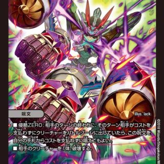 {GS} G・ストライク(このカードを自分のシールドゾーンから手札に加える時、表向きにし、相手のクリーチャーを1体選んでもよい。このターン、そのクリーチャーは攻撃できない)G-NEO進化:闇、火、または自然のクリーチャー1体の上に置いてもよい。(カードが下にあれば、NEO進化クリーチャーとして扱い、離れる時、かわりに下のカードすべてが離れる)相手のクリーチャーが召喚以外の方法で出た時、そのクリーチャーを破壊する。