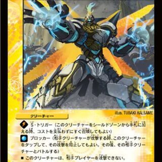 NEO進化:光、火、または自然のクリーチャー1体の上に置いてもよい。(カードが下にあれば、これをNEO進化クリーチャーとして扱う)W・ブレイカー(このクリーチャーはシールドを2つブレイクする)自分のパワー6000以上のクリーチャーが相手プレイヤーを攻撃する時、カードを1枚引いてもよい。