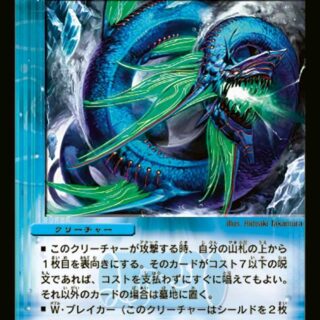 革命チェンジ:光または火のクリーチャースピードアタッカーこのクリーチャーが出た時、自分の山札の上から1枚目を表向きにし、自分のシールド1つの上に置いてもよい。