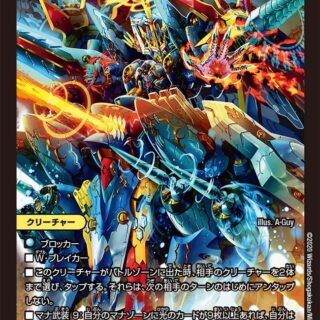 NEO進化:光、水、または自然のクリーチャー1体の上に置いてもよい。(カードが下にあれば、これをNEO進化クリーチャーとして扱う)ジャストダイバーW・ブレイカーこのクリーチャーが出た時または攻撃する時、カードを1枚引く。その後、コスト4以下のスノーフェアリーを1つ、自分の手札またはマナゾーンから出してもよい。自分のクリーチャーが破壊される時、墓地のかわりにマナゾーンに置いてもよい。