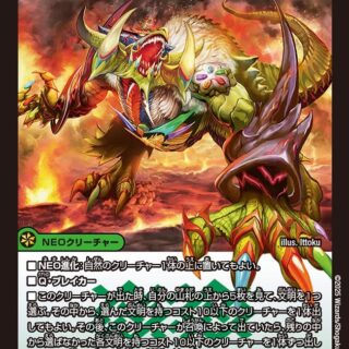ジャストダイバーW・ブレイカーこのクリーチャーが出た時、相手のクリーチャーを2体選び、そのうち1体をもう1体の下に置く。ハイパー化:自分の他のクリーチャーを1体タップする。(自分のメインステップ中に、ハイパーモードを解放できる。ハイパーモードは次の自分のターンのはじめまで続く)