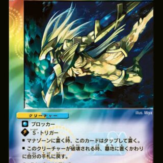 S・トリガーこのクリーチャーが出た時、次のうちいずれか1つを選ぶ。▶相手のクリーチャーを1体選び、持ち主の手札に戻す。▶相手のコスト2以下のクリーチャーをすべて、持ち主の手札に戻す。