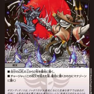 W・ブレイカースピードアタッカー同じ名前のウエポンを2枚以上、このクリーチャーに装備できない。このクリーチャーが出た時、火のドラグハートを、コストの合計が自分のマナゾーンにあるドラゴンの数以下になるように好きな数選び、自分の超次元ゾーンから選んで出す。(それがウエポンであれば、このクリーチャーに装備して出す)マナ武装7:このクリーチャーが攻撃する時、自分のマナゾーンに火のカードが7枚以上あれば、その攻撃の終わりに、自分のドラグハートをすべてクリーチャー側に裏返し、アンタップする。