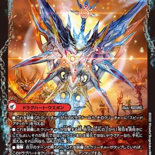 S・トリガーこのクリーチャーが出た時、相手のクリーチャーを1体を選んでもよい。その選んだクリーチャーとこのクリーチャーをバトルさせる。各ターン、このクリーチャーがはじめてバトルに勝った時、火のコスト4以下のドラグハート・ウエポンを1枚、自分の超次元ゾーンから出す。(このクリーチャーに装備する)