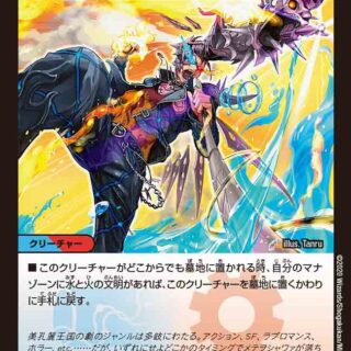 ガードマン(このクリーチャーをタップして、相手クリーチャーの攻撃先を、自分の他のクリーチャーからこのクリーチャーに変更してもよい)W・ブレイカー(このクリーチャーはシールドを2つブレイクする)ヨビニオン(このクリーチャーが召喚によって出た時、自分の山札の上から、これよりコストが小さいクリーチャーが出るまで表向きにしてもよい。そのクリーチャーを出す。残りをシャッフルし、山札の下に置く)バトル中、このクリーチャーのパワーを+6000する。