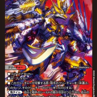 W・ブレイカーこのクリーチャーが出た時、自分の山札の上から3枚を表向きにする。それがすべてジョーカーズなら、その中からクリーチャーを1体出す。そのターン、そのクリーチャーは、相手プレイヤーを攻撃できる。残りのカードを好きな順序で自分の山札の下に置く。