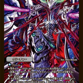 革命チェンジ:コスト5以上のジョーカーズ(自分のコスト5以上のジョーカーズが攻撃する時、そのクリーチャーと手札にあるこのクリーチャーを入れ替えてもよい)W・ブレイカーこのクリーチャーが出た時、カードを1枚引き、その後、自分の手札を1枚捨てる。こうして捨てたカードがジョーカーズなら、そのカードの「このクリーチャーが出た時」で始まる能力を1つ使ってもよい。相手は、自身のターンに1枚しか呪文を唱えられない。
