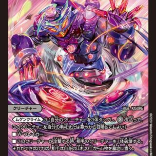 相手のターン中に、相手がコストを支払わずにクリーチャーをバトルゾーンに出した時、相手はそれを自身の山札の一番下に置く。このクリーチャーがバトルゾーンに出た時、プレイヤーを1人選ぶ。そのプレイヤーは自身の墓地にあるカードをすべて山札に加えてシャッフルする。