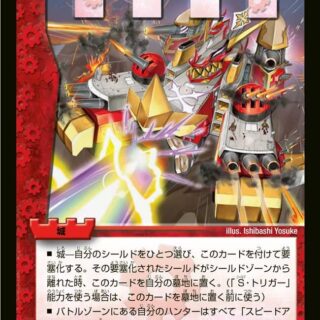 スピードアタッカー(このクリーチャーは召喚酔いしない)各ターンに一度、このクリーチャーが相手のシールドをブレイクした時、他の各相手のシールドを1つずつブレイクする。