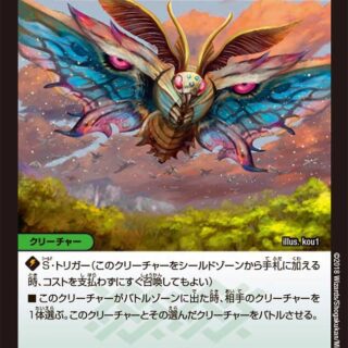 このクリーチャーが出た時、自分のマナゾーンにある文明1つにつき、カードを1枚引いてもよい。その後、引いたカードと同じ枚数の手札を、好きな順序で山札の下に置く。