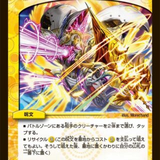 この鼓動は、ゲーム開始時、封印を6つ付けてバトルゾーンに置く。この鼓動はバトルゾーンを離れない。禁断解放:この鼓動の封印がすべてなくなった時、クリーチャー側に裏返す。(カードを封印するには、自分の山札の上から1枚目を裏向きのままそのカードの上に置く。コマンドが出た時、その持ち主はそのコマンドと同じ文明を持つ自身のカードから封印を1つ、墓地に置く。封印されているクリーチャーは無視される)