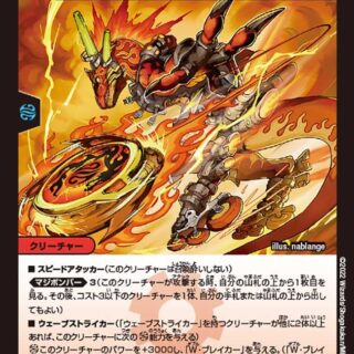 ニンジャ・ストライク 1(相手のクリーチャーが攻撃またはブロックした時、自分のマナゾーンにカードが1枚以上あり、その攻撃中に「ニンジャ・ストライク」能力を使っていなかった場合、このシノビをコストを支払わずに召喚してもよい。そのターンの終わりに、このシノビを自分の山札の一番下に置く)このクリーチャーがバトルゾーンに出た時、相手のクリーチャーを1体選び、タップする。