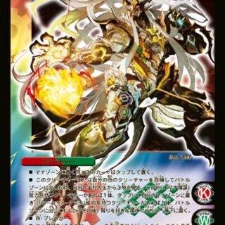 進化GV・Ω:自分の墓地、マナゾーン、バトルゾーンからクリーチャーを1体ずつ選び、このクリーチャーをその上に重ねつつ出す。エクストラEXライフ(このクリーチャーを出す時、自分の山札の上から2枚をシールド化する。このクリーチャーが離れる時、かわりにそのシールドのうち1つを墓地に置く)ワールド・ブレイカー「EXライフ」シールドが自分のシールドゾーンを離れた時、このクリーチャーの下にあるカードを1枚、墓地に置く。それが進化ではないクリーチャーなら、自分の墓地から出す。自分のシールドゾーンにあるディスペクターすべてに「G・ストライク」を与える。