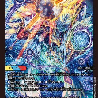 アビスラッシュ:このクリーチャーを自分の墓地から召喚してもよい。そうしたら、このターン、このクリーチャーはプレイヤーを攻撃でき、ターンの終わりに山札の下に置かれる。W・ブレイカー(このクリーチャーはシールドを2つブレイクする)シビルカウント3:このクリーチャーが攻撃する時、自分の闇のクリーチャーまたは闇のタマシードが合計3つ以上あれば、相手のクリーチャーを1体破壊する。