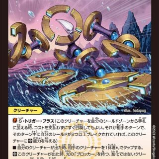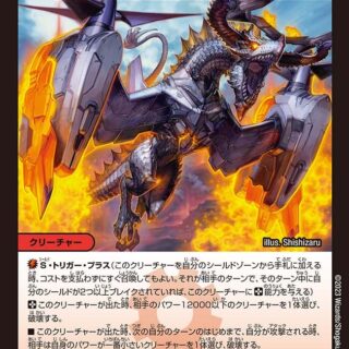 W・ブレイカー(このクリーチャーはシールドを2つブレイクする)このクリーチャーが出た時、自分のクリーチャーを2体破壊する。その後、相手は自身のクリーチャーを1体選び、破壊する。