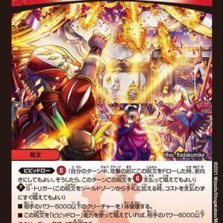 スーパー・S・トリガー(この呪文を自分のシールドゾーンから手札に加える時、コストを支払わずにすぐ唱えてもよい。その時自分のシールドが1つもなければ、この呪文にxB能力を与える)相手のアンタップしているクリーチャーを1体破壊する。xB相手は、バトルゾーンまたは手札にある自身のカードを合計7枚選び、墓地に置く。