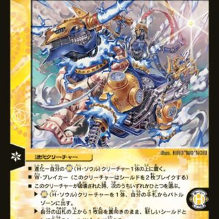 ブロッカー(このクリーチャーをタップして、相手クリーチャーの攻撃先をこのクリーチャーに変更してもよい)このクリーチャーが出た時、自分のタマシード1枚につき、自分のシールドを1つブレイクする。(そのS・トリガーを使ってもよい)