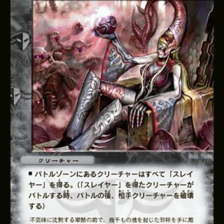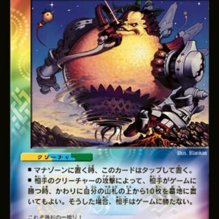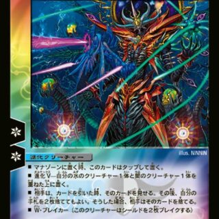 S・トリガー(このクリーチャーをシールドゾーンから手札に加える時、コストを支払わずにすぐ召喚してもよい)このクリーチャーが出た時、自分のクロスギアを1枚、手札に戻してもよい。そうしたら、相手のクリーチャーを1体選び、持ち主の手札に戻す。