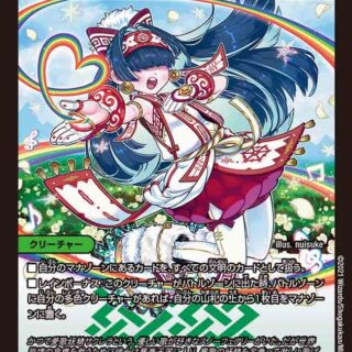 究極進化:進化クリーチャー1体の上に置く。侵略:自然のコスト3以上の進化クリーチャー(自分の自然のコスト3以上の進化クリーチャーが攻撃する時、自分の手札にあるこのクリーチャーをその上に重ねてもよい)Q・ブレイカーこのクリーチャーが出た時、このクリーチャーよりパワーが小さい相手のクリーチャーをすべて、持ち主のマナゾーンに置く。
