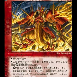 マナゾーンに置く時、このカードはタップして置く。このクリーチャーを召喚するコストを、自分の墓地にあるエンジェル・コマンドまたはアーマード・ドラゴン1体につき1少なくしてもよい。ただし、コストは2より少なくならない。スピードアタッカーパワーアタッカー+4000W・ブレイカー