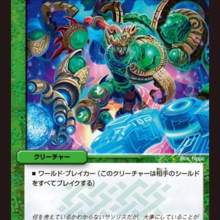W・ブレイカー(このクリーチャーはシールドを2つブレイクする)侍流ジェネレート(このクリーチャーが出た時、自分の手札にあるクロスギアを1枚、コストを支払わずにジェネレートしてもよい)このクリーチャーが出た時、自分のサムライ・クロスギアを1枚、コストを支払わずにこのクリーチャーにクロスしてもよい。